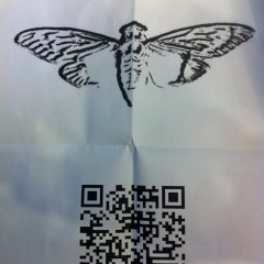 These locations were scattered across the globe, compelling solvers to collaborate. At each of these coordinates, a sheet of paper could be found stuck — in most cases — to a telegraph pole. All posters retrieved had a QR code and an image of a cicada. This was the first appearance of the puzzle logo.