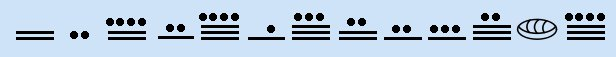 (note, duration) | letter ============================== (55, 24) | a (56, 24) | b (58, 24) | c (60, 24) | d (61, 24) | e (63, 24) | f (65, 24) | g (67, 24) | h (55, 96) | i (56, 96) | j (58, 96) | k (60, 96) | l (61, 96) | m (63, 96) | n (65, 96) | o (67, 96) | p (55, 192) | q [*] (56, 192) | r (58, 192) | s (60, 192) | t (61, 192) | u (63, 192) | v (65, 192) | w (67, 192) | x [*] (55, 384) | y (56, 384) | z [*]