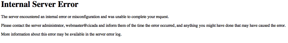 A screenshot of the 500 Internal Error initially shown